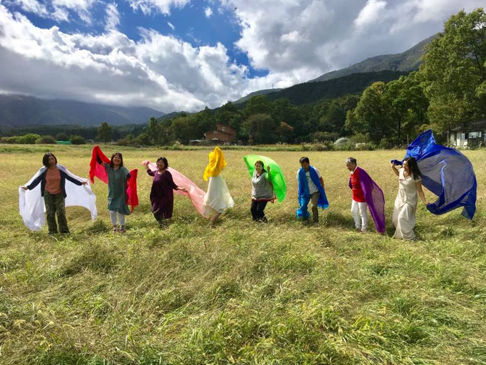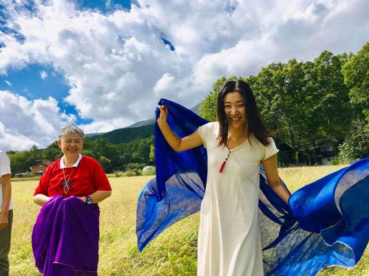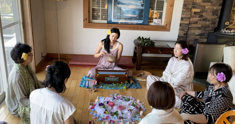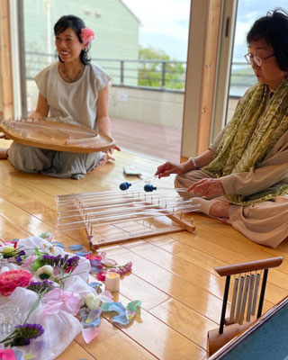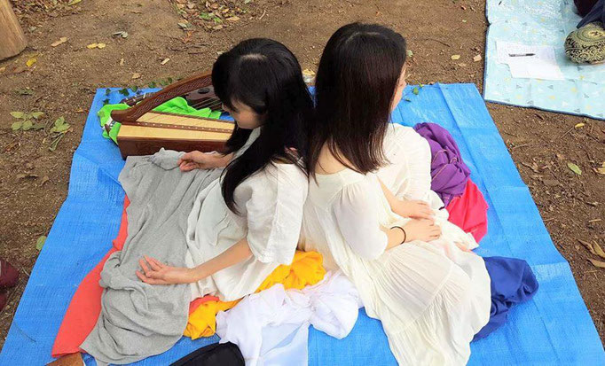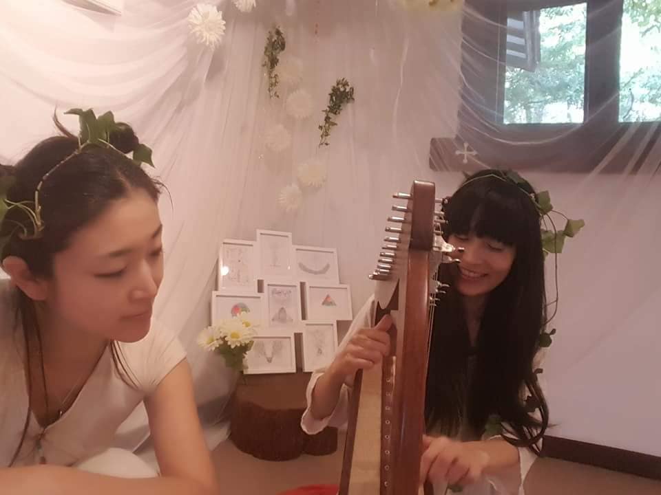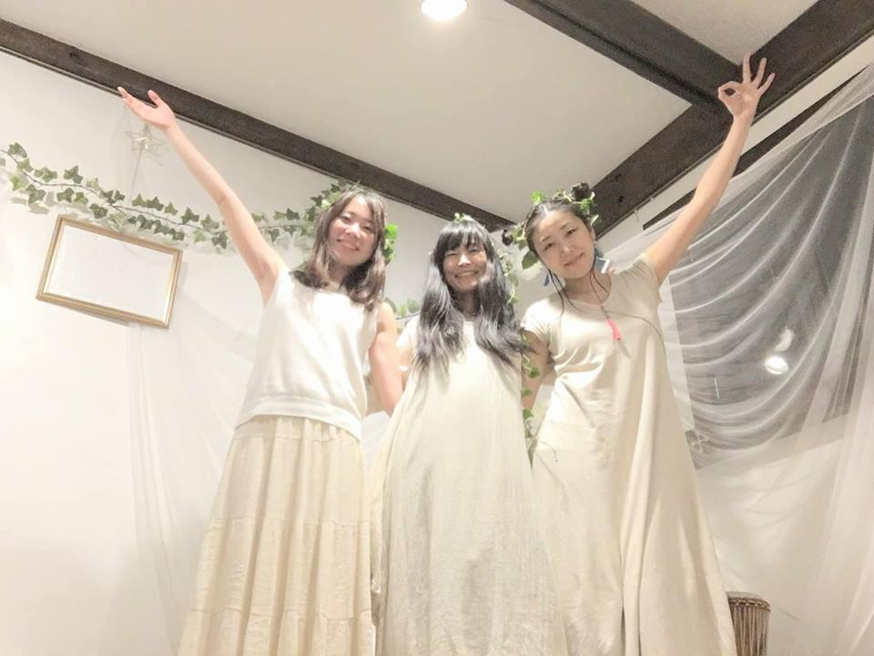 三人の女神による音と絵、空間パフォーマンスの感覚的アートをお楽しみいただきました。